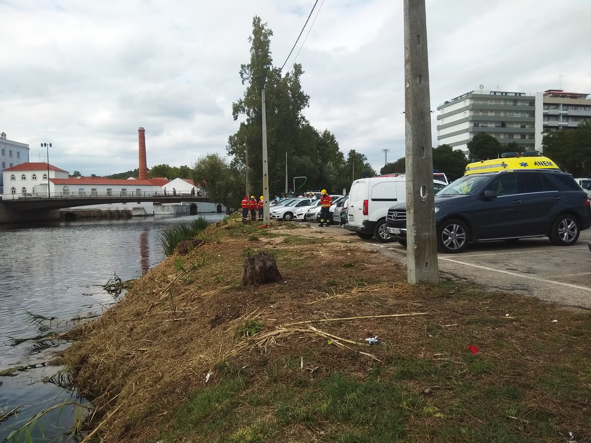 Esta tarde uma viatura estacionada no parque do mercado municipal de Tomar caiu ao rio Nabão. Sem ocupantes e estacionada na margem do rio a viatura não estaria conveniente travada.