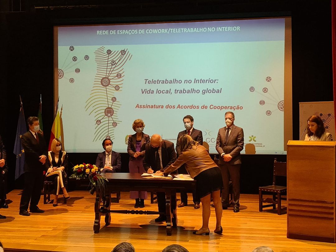 Fernando Freire, presidente da Câmara Municipal de Vila Nova da Barquinha, assinou, hoje, em Vouzela, um Acordo de Cooperação para instalação de espaços de teletrabalho em Vila Nova da Barquinha. A cerimónia contou com a presença da Ministra da Coesão Territorial, Ana Abrunhosa, do Secretário de Estado Adjunto, do Trabalho e da Formação Profissional, Miguel Cabrita, e da Secretária de Estado da Valorização do Interior, Isabel Ferreira.