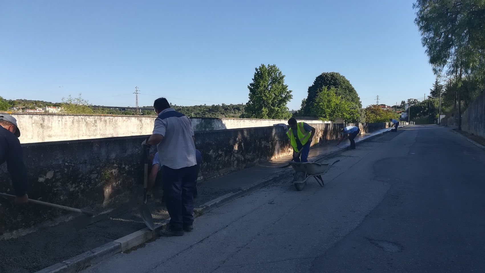 Estão a decorrer, por administração direta do município, os trabalhos de pavimentação dos passeios da Ponte da Vala, em ambos os lados do arruamento, com acabamento em betão.