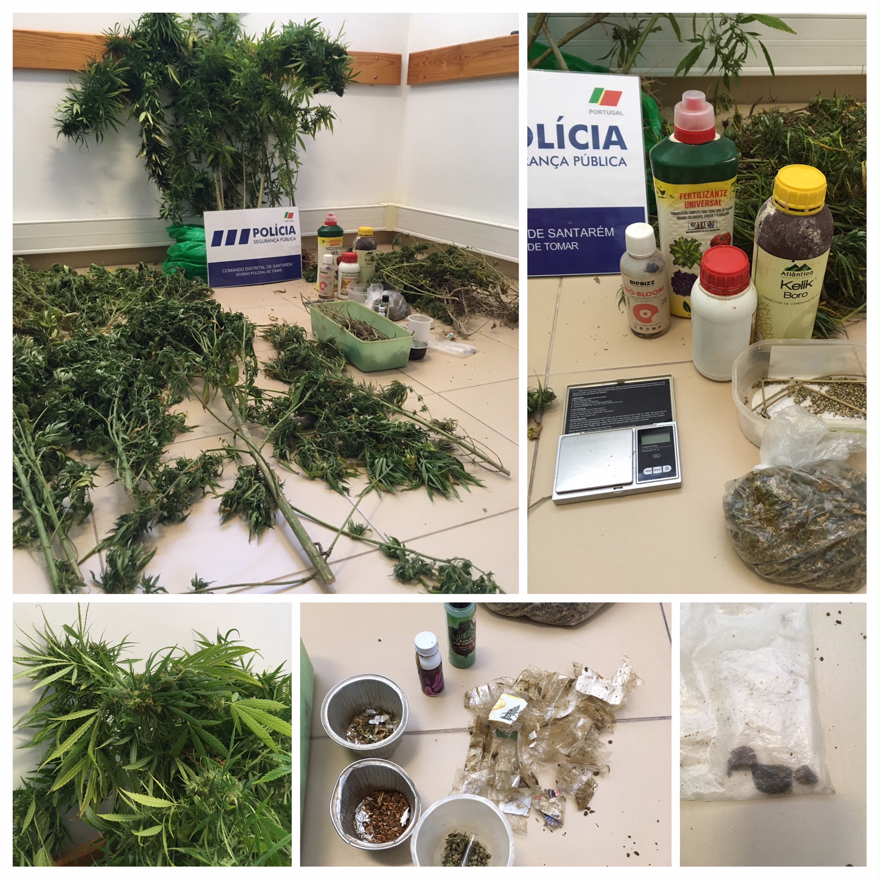 Ao detido foi apreendido: 13 pés de plantas de cannabis, e liamba em processo de secagem; 8,9 g de sementes de cannabis; três doses de haxixe; uma balança de precisão e diversos substratos/fertilizantes.