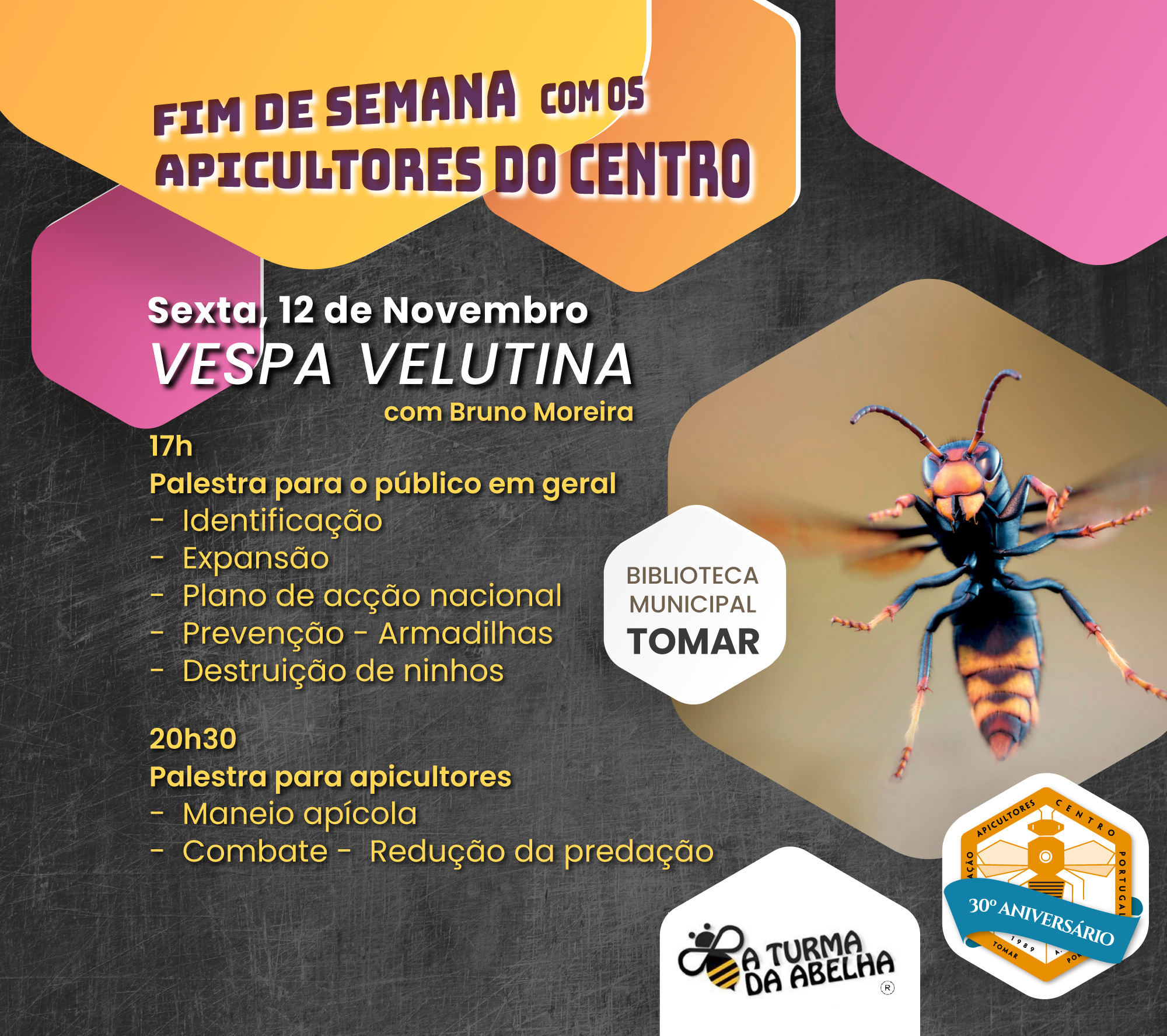 A Associação dos Apicultores do Centro de Portugal (Apicultores do Centro) promove, no dia 12 de novembro, sexta feira, na Biblioteca Municipal de Tomar, duas palestras sobre a Vespa Velutina, com o objetivo de capacitar, quer apicultores quer população em geral, para o combate a esta praga.