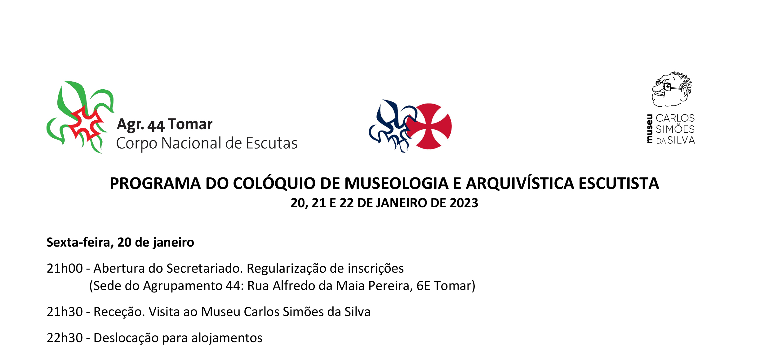 O Agrupamento 44 do Corpo Nacional de Escutas (CNE) de Tomar, em parceria com o Museu do CNE – Lisboa e com o apoio da Direção-Geral de Património Cultural – Convento de Cristo, a Câmara Municipal de Tomar e a Creche, Jardim de Infância e Centro de Estudos “Academia de Sonhos”, vai promover, nos próximos dias 20, 21 e 22 de janeiro, em Tomar, a realização de um colóquio sobre Museologia e Arquivística Escutista: “Preservar Memórias, Consolidar a Identidade”.