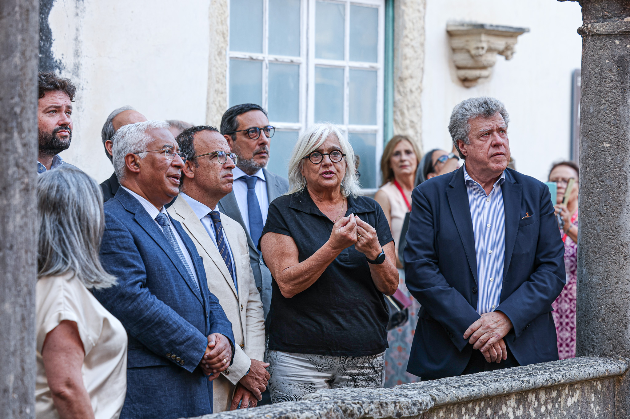A presidente e o vice-presidente de Câmara de Tomar, Anabela Freitas e Hugo Cristóvão, e o presidente da Assembleia Municipal, Hugo Costa, acompanharam a visita do primeiro-ministro, do ministro da Cultura e do secretário de Estado adjunto às obras do Convento de Cristo e às que agora se preconizam para o Convento e para o Castelo Templário.
