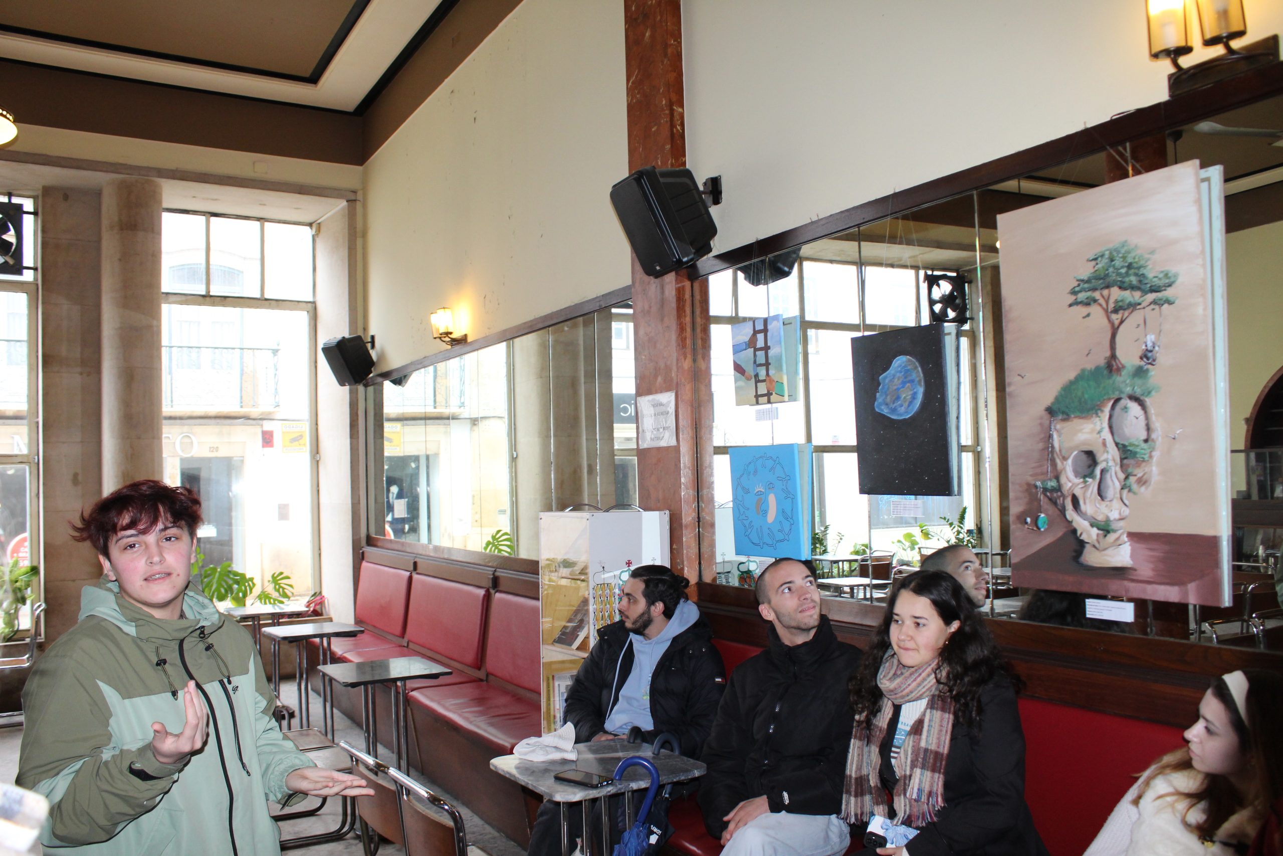 Foi inaugurada, no passado dia 7 de março, no café Paraíso, uma exposição de pintura de alunos da Escola Profissional de Tomar. Trata-se do resultado da componente de Cidadania e Desenvolvimento, que, nos últimos três anos, teve naquele estabelecimento de ensino o tema aglutinador “Eu somos todos”. Da reflexão sobre o tema, os alunos do 12.º ano do curso de Técnico de Artes Gráficas aceitaram o desafio de representar numa tela a sua interpretação e sentir sobre a matéria, que deu origem a esta exposição com o mesmo título.