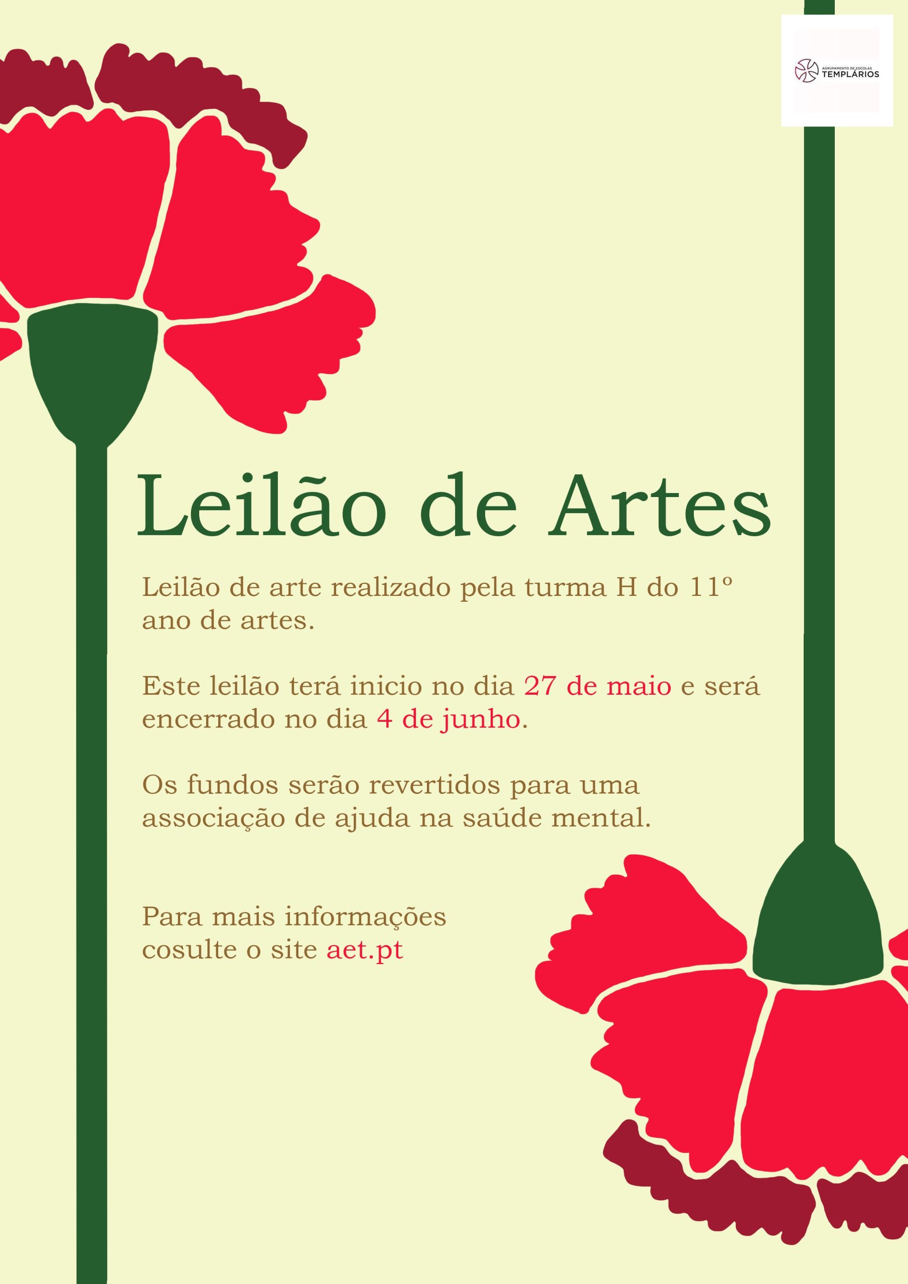 O leilão decorrerá em formato online entre os dias 27 de maio e 4 de junho, estando todas as informações sobre o mesmo, bem como reproduções das obras, disponíveis no site do Agrupamento de Escolas Templários, em www.aet.pt.