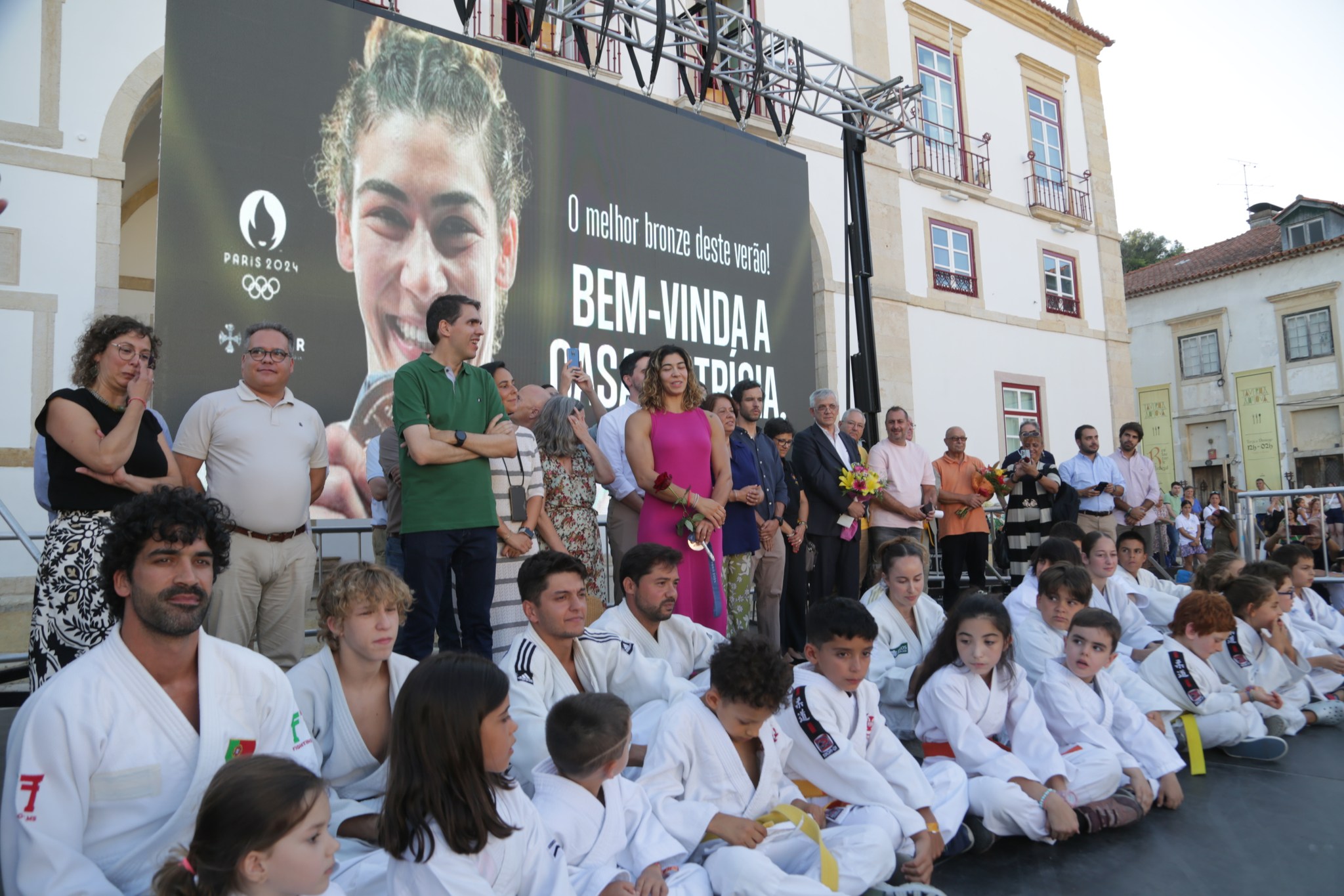 A Praça da República encheu, no final da tarde de segunda feira, com todos os que quiseram saudar a judoca Patrícia Sampaio na receção promovida pelo Município de Tomar. A cidade e o município receberam-na com um elogio, estampado num cartaz gigante, colocado atrás do palco onde decorreu toda a homenagem, com a mensagem: “O melhor bronze deste verão! Bem-vinda a casa Patrícia!”. A cerimónia teve início com a atuação da SFGP que tocou o Hino de Portugal, o Hino de Tomar e o Hino da coletividade.