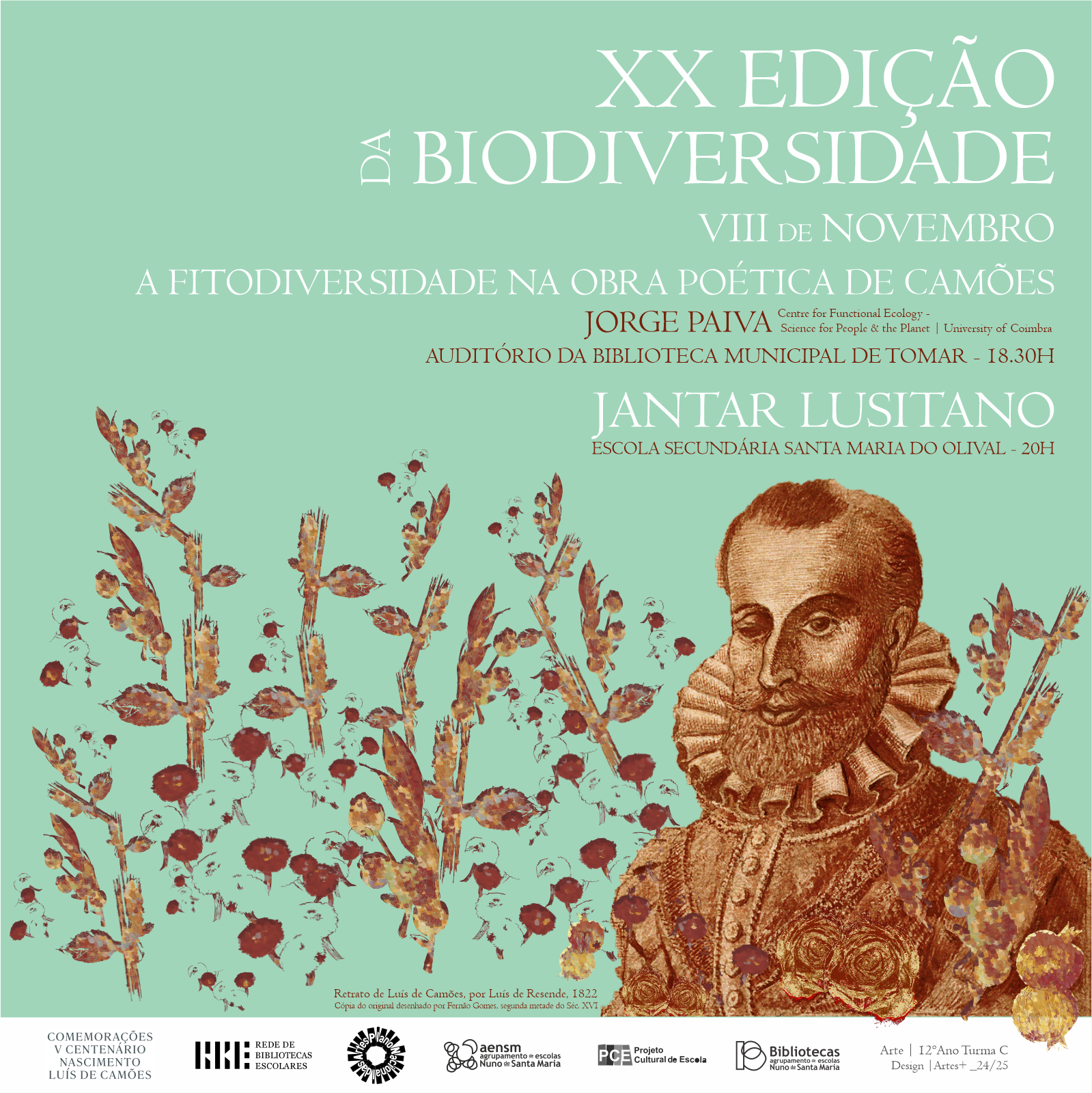 Este ano, a XX edição incide sobre a temática “A Fitodiversidade na obra poética de Camões”, com início às 18h30, seguida do habitual Jantar Lusitano, na Escola Secundária Santa Maria do Olival, às 20h00.