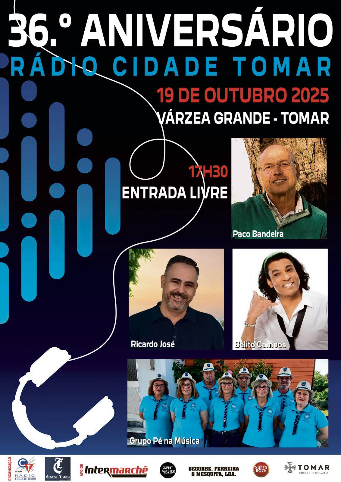 A Rádio Cidade de Tomar vai celebrar o seu 36.º aniversário no domingo, 19 de outubro, com um espetáculo musical aberto ao público, que terá lugar na Várzea Grande, em Tomar.